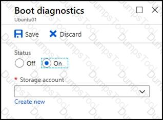 You need to create and configure an Azure Storage account named az400lod11566895stor in a resource group named RG1lod11566895 to store the boot diagnostics for a virtual machine named VM1.
