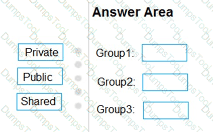 Which type of distribution group should you use for each group? To answer, drag the appropriate group types to the correct locations. Each group type may be used once, more than once, or not at all. You may need to drag the split bar between panes or scroll to view content.
