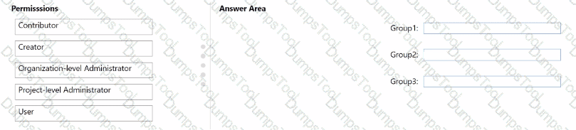 Which permission should you grant to each group? To answer, drag the appropriate permissions to the correct groups. Each permission may be used once, more than once, or not at all. You may need to drag the split bar between panes or scroll to view content.