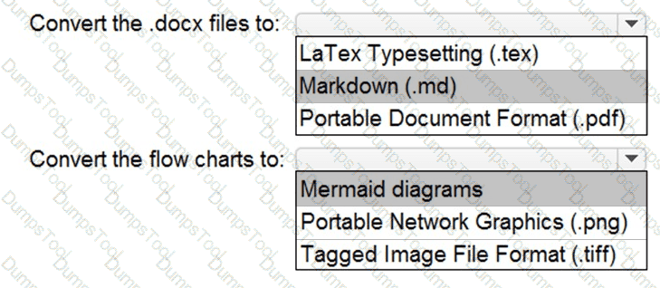 Your company uses GitHub for source control. GitHub repositories store source code and store process documentation. The process documentation is saved as Microsoft Word documents that contain simple flow charts stored as .bmp files.