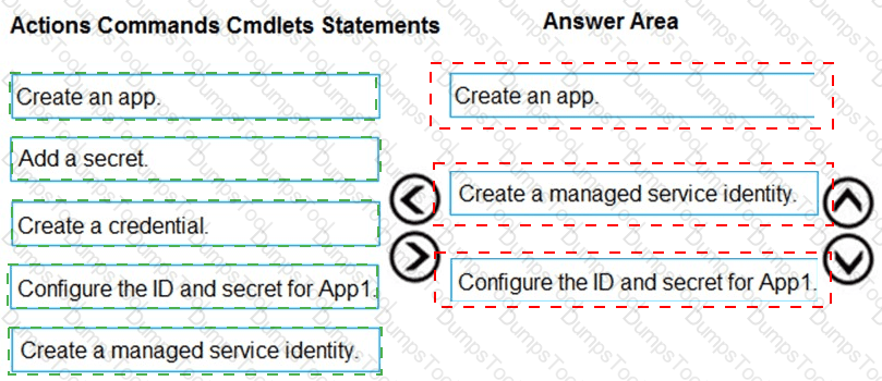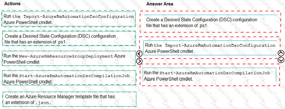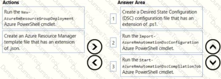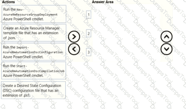 Which three actions should you perform in sequence? To answer, move all actions from the list of actions to the answer area and arrange them in the correct order.