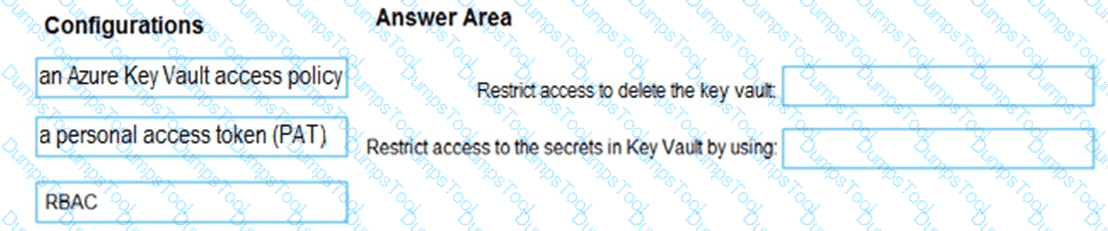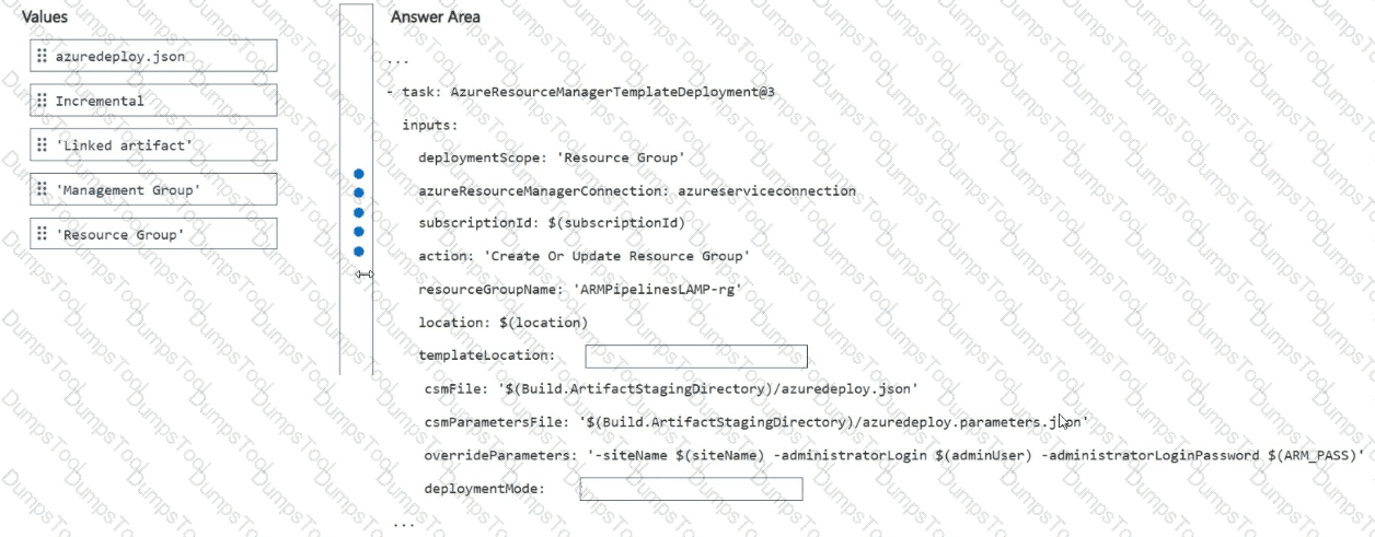 How should you configure the pipeline task? To answer, drag the appropriate values to the correct targets. Each value may be used once, more than once, or not at all. You may need to drag the split bar between panes or scroll to view content.