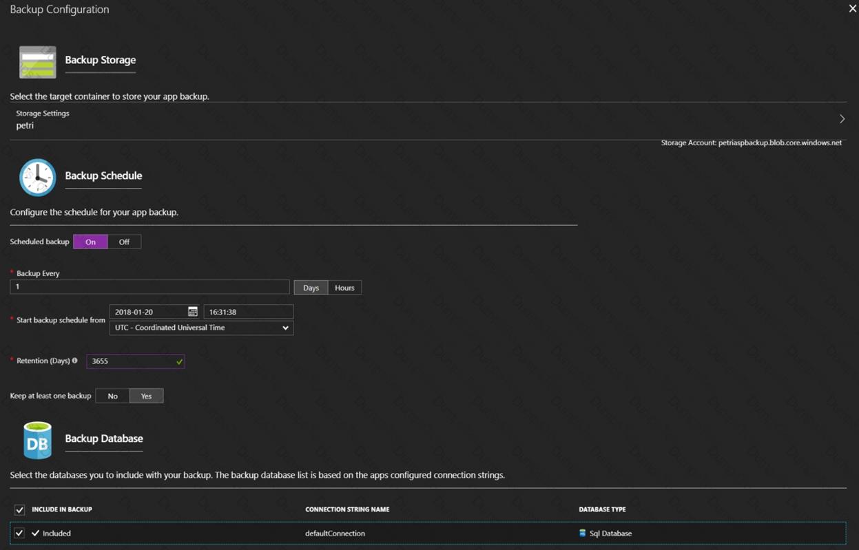 Your company plans to implement a new compliance strategy that will require all Azure web apps to be backed up every five hours.