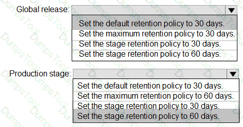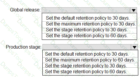 How should you configure the release retention policy for the investment planning applications suite? To answer, select the appropriate options in the answer area.