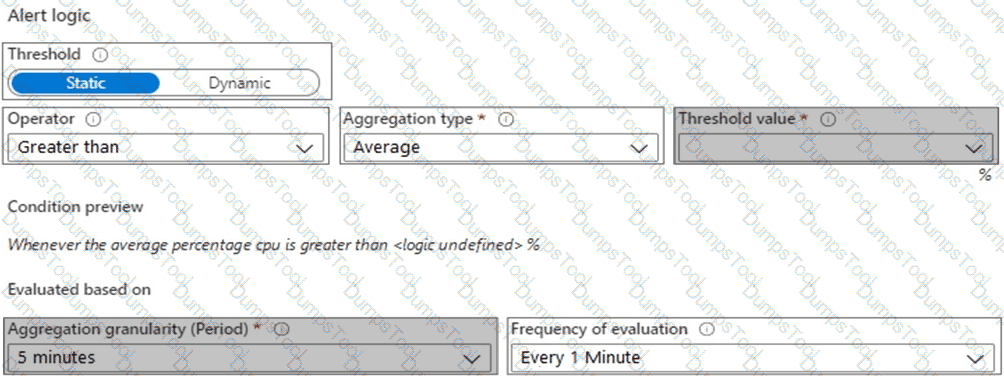 You need to configure the alert for VM1. The solution must meet the technical requirements.
