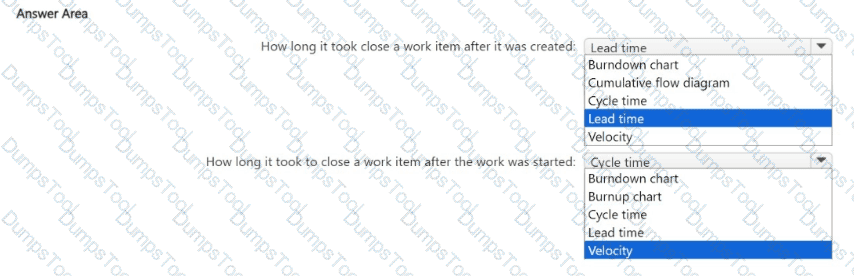 • How long it took to close a work item after it was created.