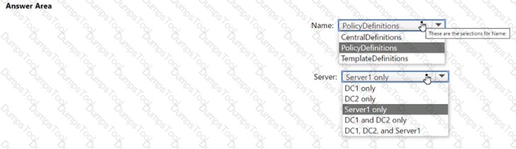 Your network contains an Active Directory Domains Services (AD DS) domain named contoso.com. You implement a central store.