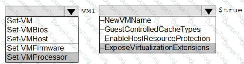 You haw? a server named Host1 that has the Hyper-V server role installed. Host! hosts a virtual machine named VM1.
