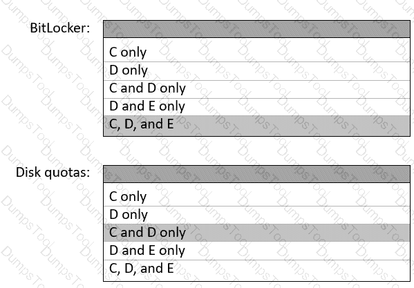 On which volumes can you use BitLocker Drive Encryption (BitLocker) and disk quotas? To answer select the appropriate options in the answer area. NOTE Each correct selection is worth one point.