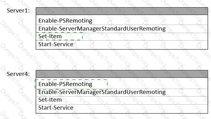 Which cmdlets should you run on Server1 and Server4? To answer, select the appropriate options in the answer area.