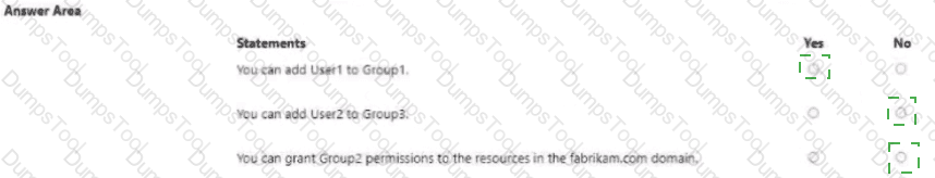 • Permissions to access the resources in fabrikam.com must only be granted directly to groups in the fabrikam.com forest.