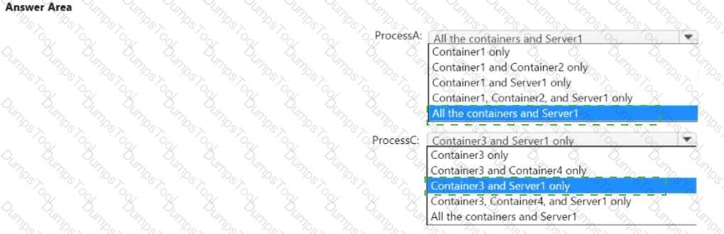 You have a Windows Server container host named Server! that has a single disk. On Server1, you plan to start the containers shown in the following table.