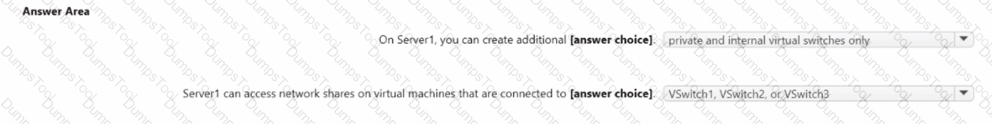 You have a server named Server1 that runs Windows Server. Server1 has a single network interface and the Hyper-V virtual switches shown in the following exhibit.