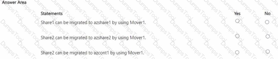 You have an Azure subscription named Sub1 that contains an Azure Storage Mover resource named Mover1 and the storage accounts shown in the following table.