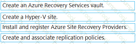 Which four actions should you perform in sequence before you can enable replication? To answer, move the appropriate actions from the list of actions to the answer area and arrange them in the correct order.