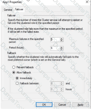 The Failover tab in App1 Properties is shown in the Failover exhibit. (Click the Failover tab.)