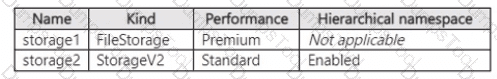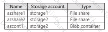 The storage accounts contain the resources shown in the following table.