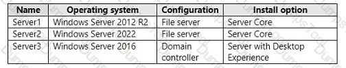 Your network contains an Active Directory Domain Services (AD DS) domain. The domain contains the servers shown in the following table.