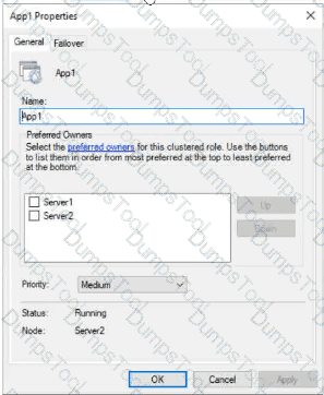 You have a failover cluster named Cluster1 that hosts an application named App1.