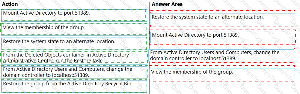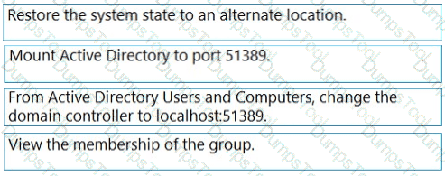 Your network contains an Active Directory Domain Services (AD DS) domain that has the Active Directory Recycle Bin enabled. All domain controllers are backed up daily.