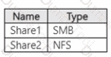 You have an on-premises server named Server1 that runs Windows Server and contains the shares shown in the following table.