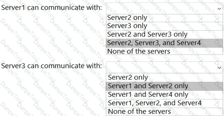 With which servers can Server1 and Server3 communicate? To answer, select the appropriate options in the answer area.