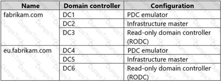 Your network contains an Active Directory Domain Services (AD DS) forest. The forest contains the domains shown in the following table.