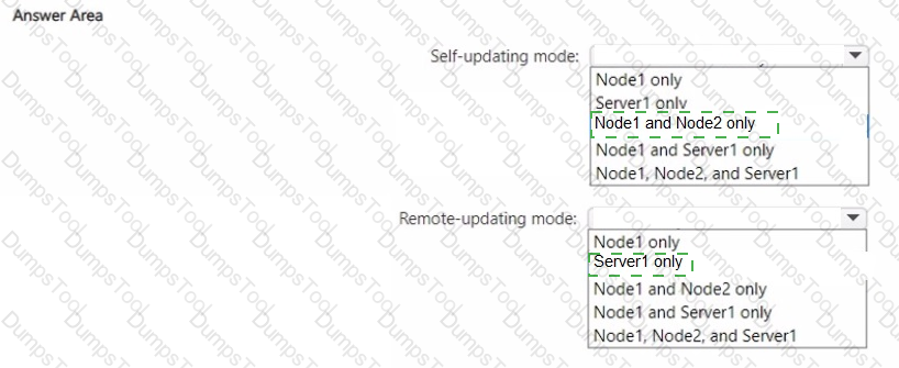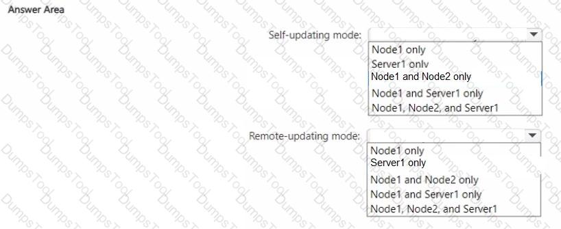 On which servers should you install the Failover Clustering tools to implement CAU in self-updating mode, and on which servers should you install the Failover Clustering tools to implement remote-updating mode? To answer, select the appropriate options in the answer area.