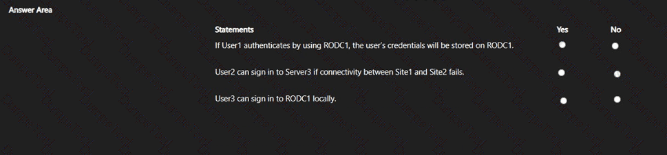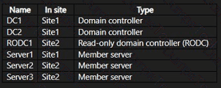 Your network contains an Active Director/ Domain Services {AD DS) domain named contoso.com. The domain contains two sites named Site1 and Site2 and servers that run Windows Server and are configured as shown in the following table.