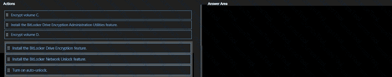 On which volumes can you turn on BitLocker, and on which volumes can you turn on auto-unlock? To answer, select the appropriate options in the answer area.