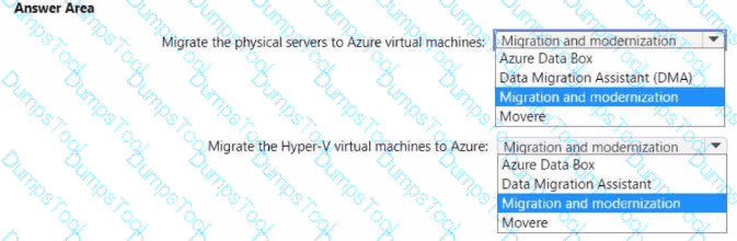 Your on-premises datacenter contains physical servers and Hyper-V virtual machines.