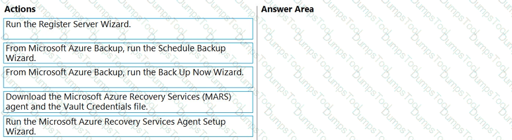 Which three actions should you perform on Server1 in sequence? To answer, move the appropriate actions from the list of actions to the answer area and arrange them in the correct order.