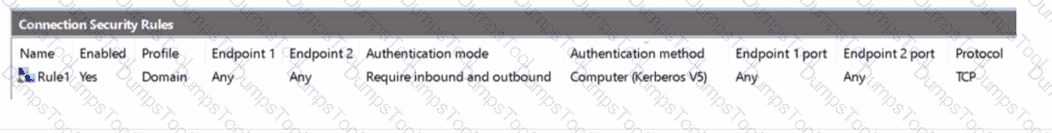 Server1 has the connection security rule as shown in the Server1 exhibit. (Click the Server1 tab.)