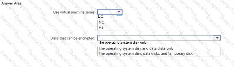 You plan to deploy an Azure confidential virtual machine named VM1. You need to ensure that you can implement confidential disk encryption for VM1. What should you do? To answer, select the appropriate options in the answer area. NOTE: Each correct selection is worth one point.