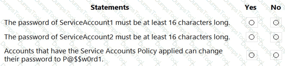 An organizational unit (OU) named ServiceAccounts is shown in the OU exhibit. (Click the OU tab.)