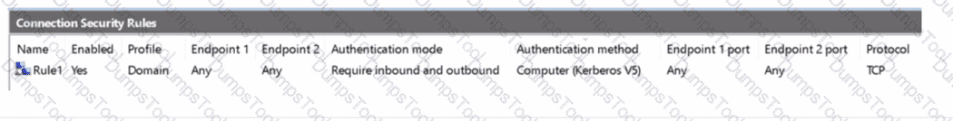 Server2 has the connection security rule as shown in the Server2 exhibit. (Click the Server2 tab.)