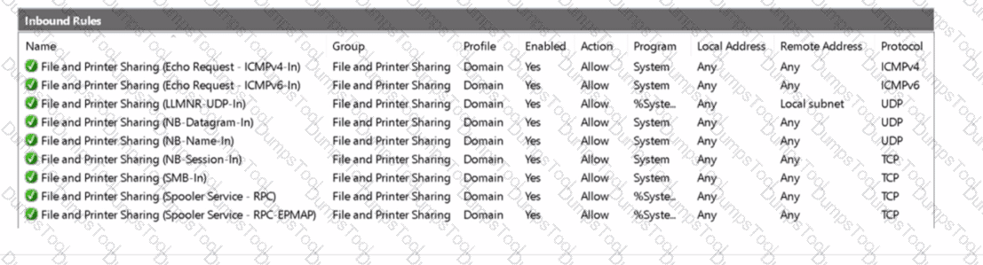 Server1 has the inbound firewall rules as shown in the Server1 inbound rules exhibit. (Click the Server1 inbound rules tab.)