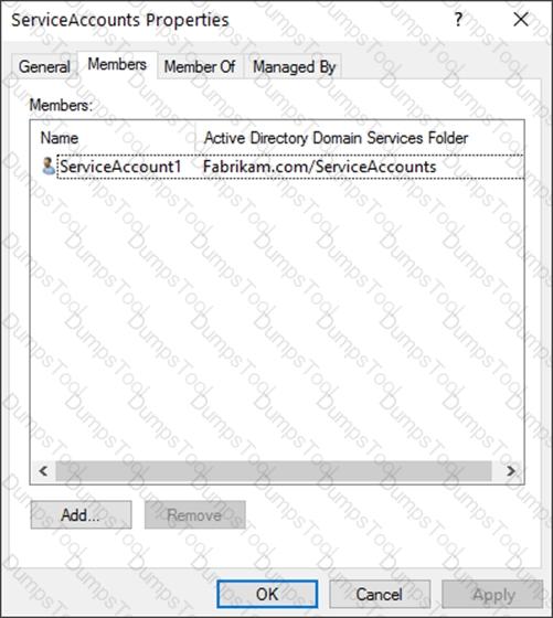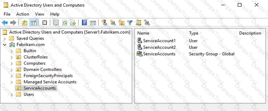 The members of a group named Service Accounts are shown in the Group exhibit. (Click the Group tab.)