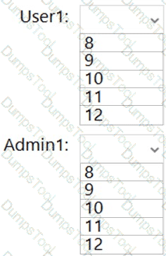 What is the effective minimum password length for User1 and Admin1? To answer, select the appropriate options in the answer area.