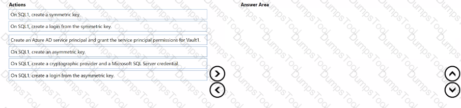 You have an Azure key vault named Vault1 and a SQL Server on Azure Virtual Machines instance named SQL1 SQL 1 hosts a database named DB1.