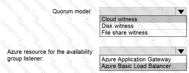 You need to configure high availability for dbl. The solution must tolerate the loss of an Azure datacenter without data loss or the need to modify application connection strings.