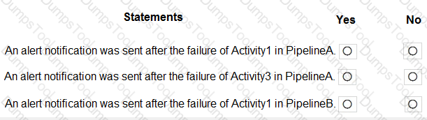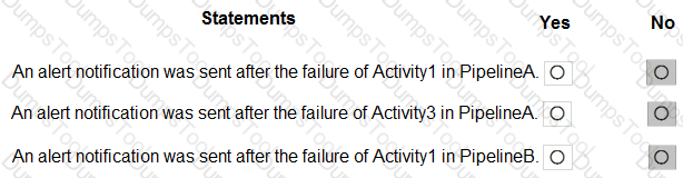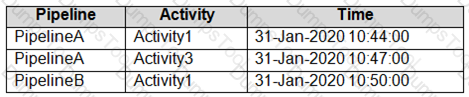 PipelineA has four activities as shown in the following exhibit.
