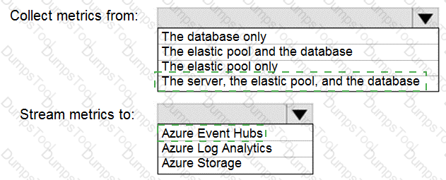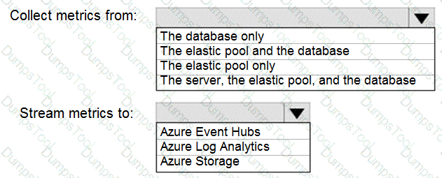How should you collect and stream metrics? To answer, select the appropriate options in the answer area.