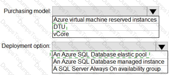 You need to recommend the appropriate purchasing model and deployment option for the 30 new databases. The solution must meet the technical requirements and the business requirements.