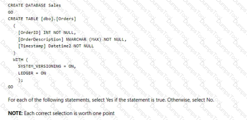 For each of the following statements, select Yes if the statement is true. Otherwise, select No.