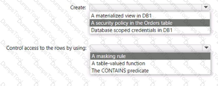 You have an Azure SQL database named DB1 that contains a table named Orders. The Orders table contains a row for each sales order. Each sales order includes the name of the