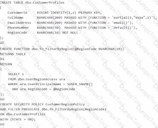 You have an Azure SQL database that contains the following tables and columns.