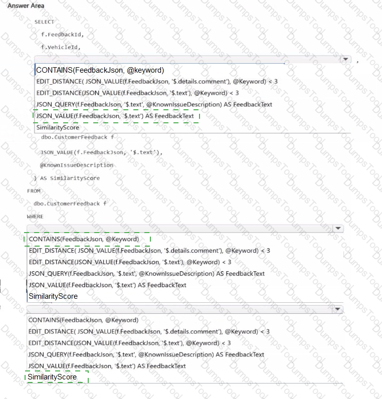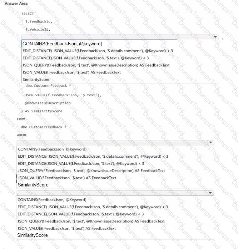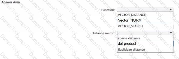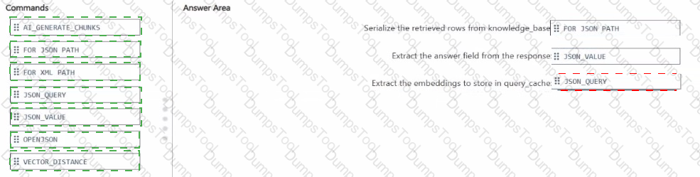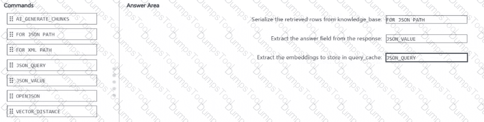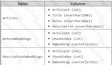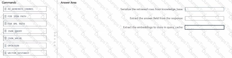You have an Azure SQL database named DB1 that contains two tables named knowledgebase and query_cache. knowledge_base contains support articles and embeddings. query_cache contains chat questions, responses, and embeddings DB1 supports an Al-enabled chat agent.