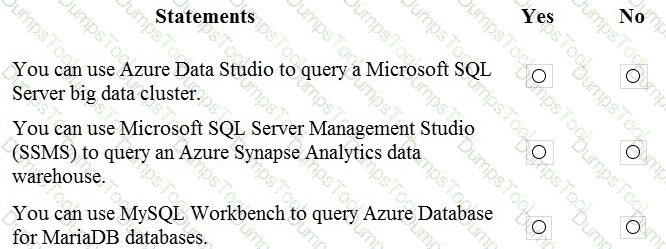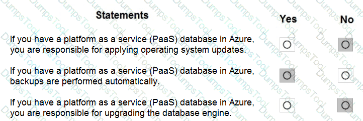 For each of the following statements, select Yes if the statement is true. Otherwise, select No.