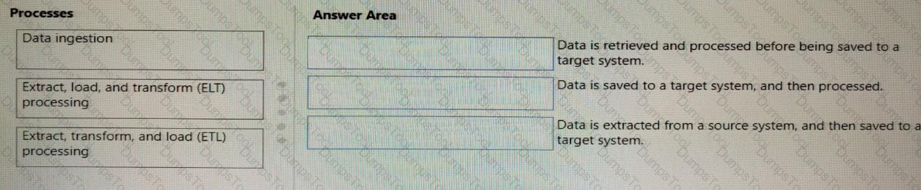 To answer, drag the appropriate process from the column on the left to its scenario on the right. Each process may be used once, more than once, or not at all.